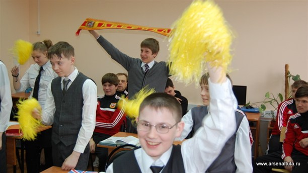 Приятно отметить, что среди учеников нашлись настоящие ценители футбола. Так, Юра Спасский прекрасно осведомлен о турнирном положении тульского «Арсенала», знает имя главного тренера и результаты многих матчей в первенстве ФНЛ.