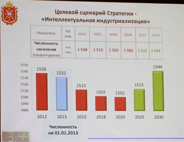 По словам Наталии Николаевой, в 2014 году прогнозируемое количество женщин в возрасте 18-34 года составит 172691. В 2020 году - 137535 (-20%), в 2025 году - 112820 (-35% по отношению к 2014 году), в 2030 году - 108551 (-37%).