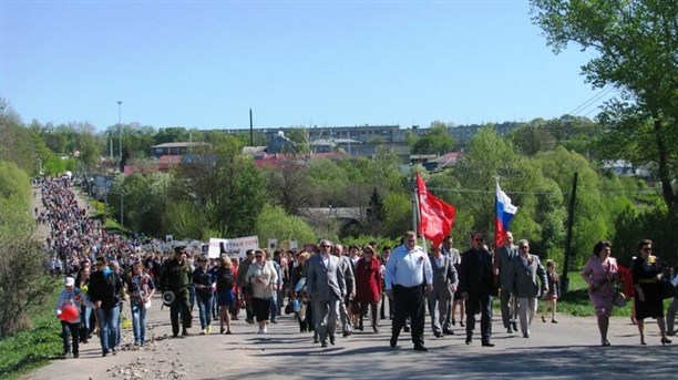 В память о погибших в Великой Отечественной войне и ныне живущих ветеранах прошествовала колонна и в Ясногорске.