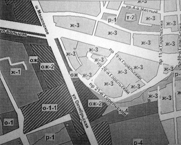 Фрагмент карты градостроительного зонирования с предлагаемым изменением на территории по ул. Октябрьской в Зареченском районе города Тулы.