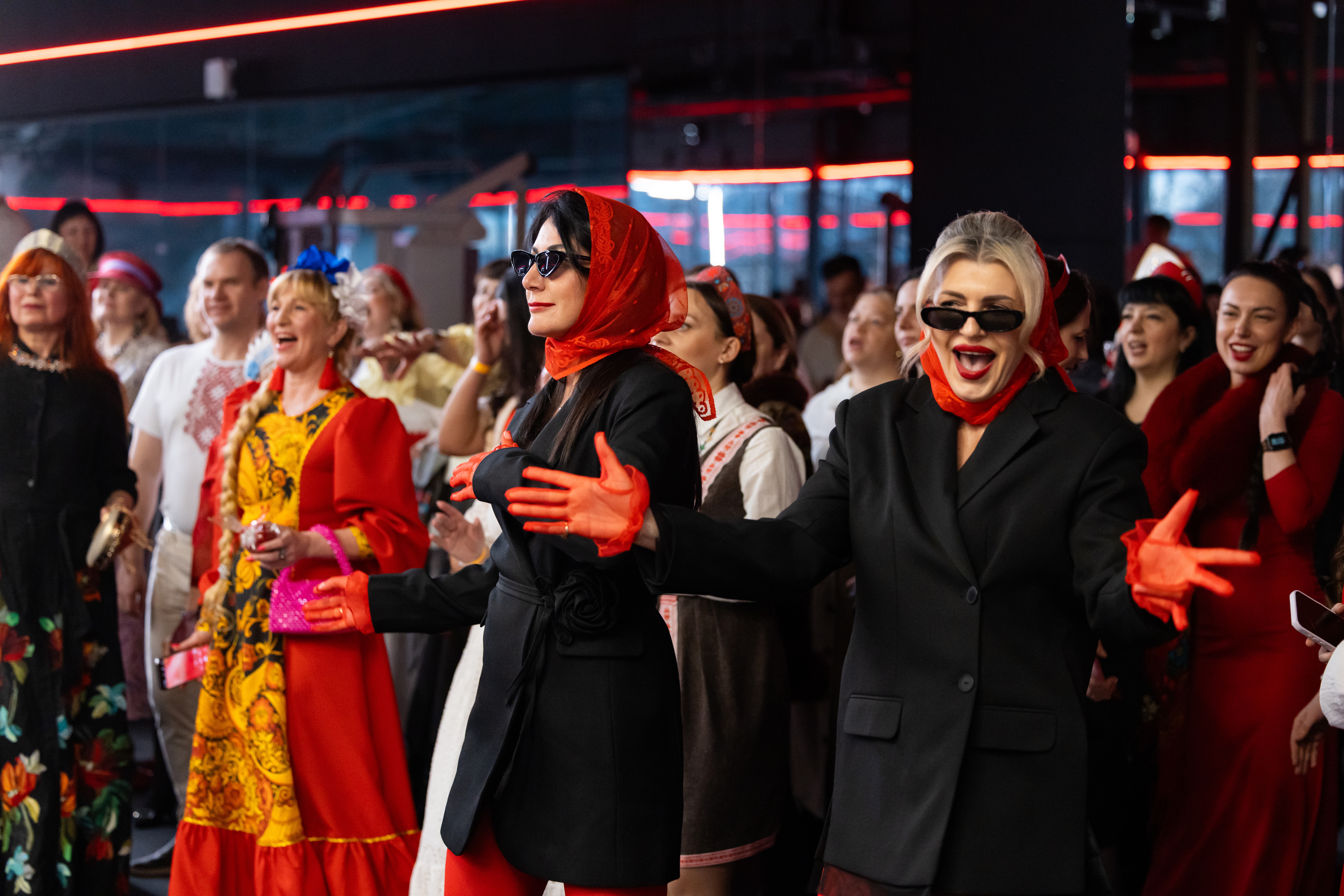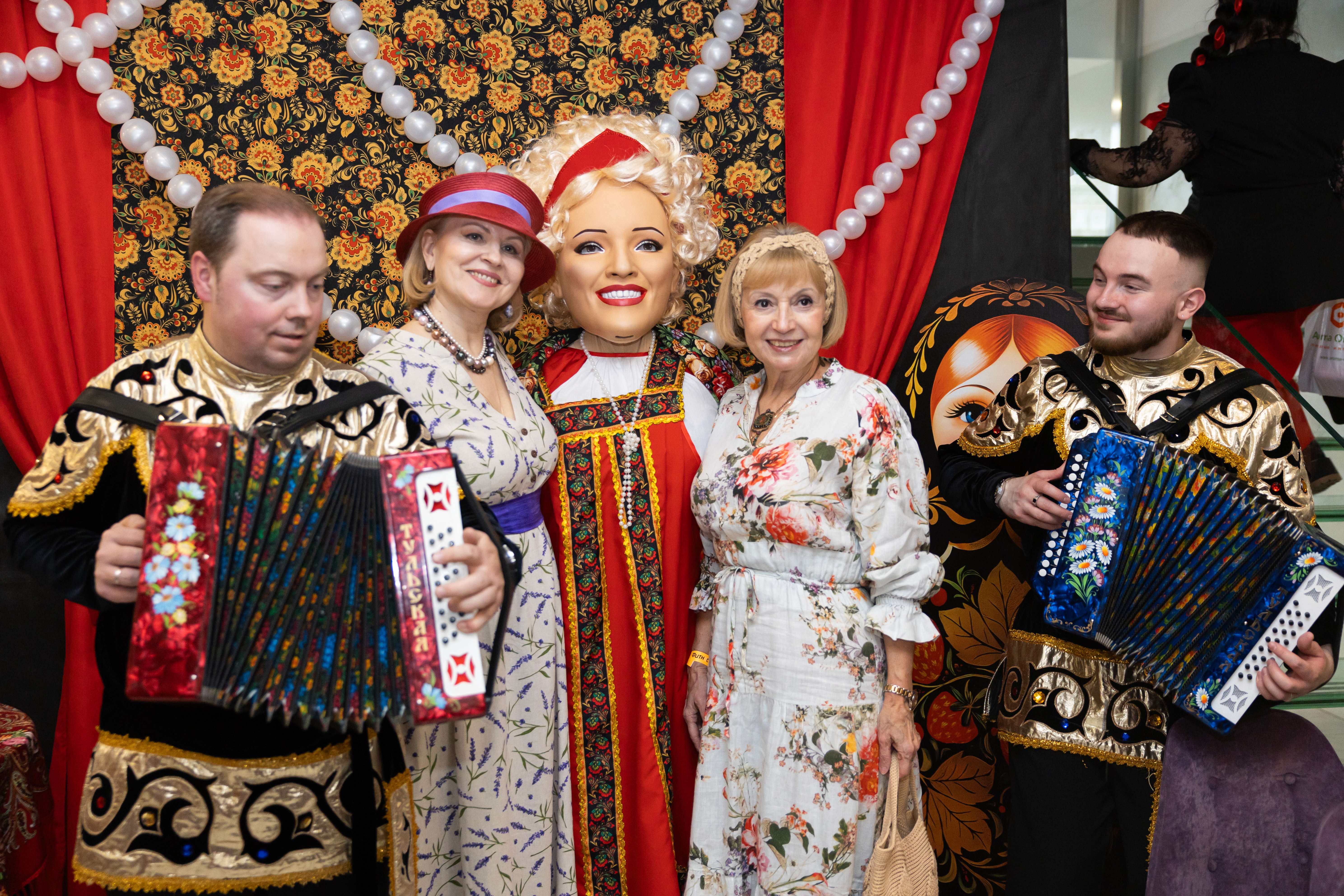 Гости подготовили фантастические образы: девушки блистали в роскошных платьях, сарафанах и юбках, их образ дополняли кокошники, ленты, броши и бусы — всё, что могло подчеркнуть национальную теплую красоту.