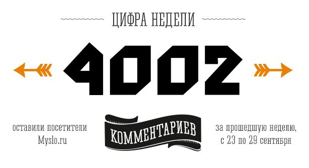А у нас с Вами новый рекорд, да еще какой! Больше 4000 комментариев написали Myslo-люди за минувшую неделю - это сильный рывок вперед, но как говорил в одном мульфильме космонавт: "Бесконечность - не предел!".