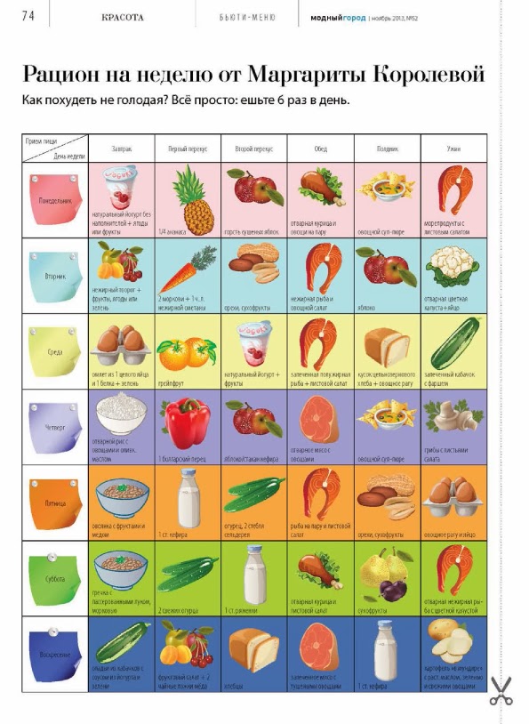 У меня оч часто спрашивают, как я питаюсь, а мне описывать все это оч непросто, план питания у меня распечатан тренером, и он просто эксклюзифф... Для всех желающих есть такая табличка из «Модного Города»: