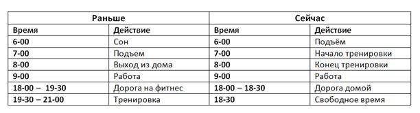 Вот так, переместив тренировки на утро, я сразу и выиграл, и проиграл. А теперь играем в +/-: