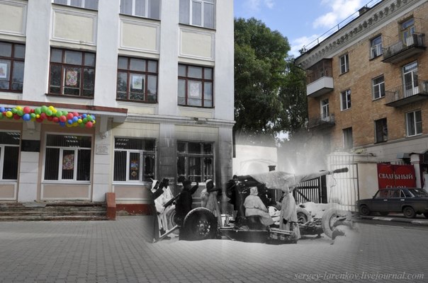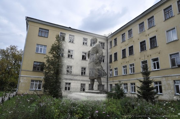 Тула 1941/2013 Пр.Ленина, 84к.8. Во дворе 3-го учебного корпуса Тульского Государственного Университета, где во время обороны находились штабы Тульского рабочего полка и 156 полка НКВД.