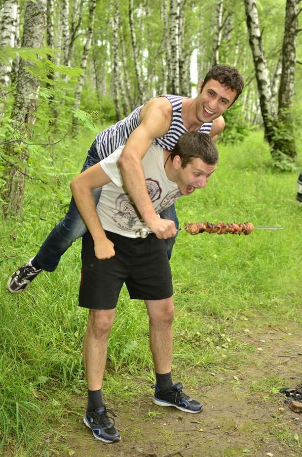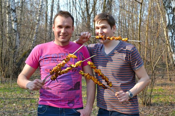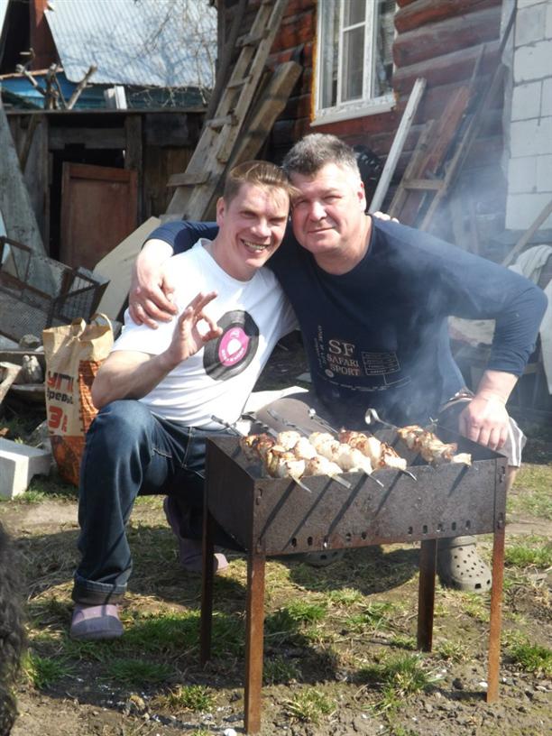 Хорошие друзья Олег и Станислав с размахом шашлычат в Хомяково.