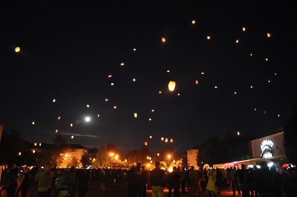 Запуск небесных фонариков на площади около "Премьера". Автор фото Елена Абазян.