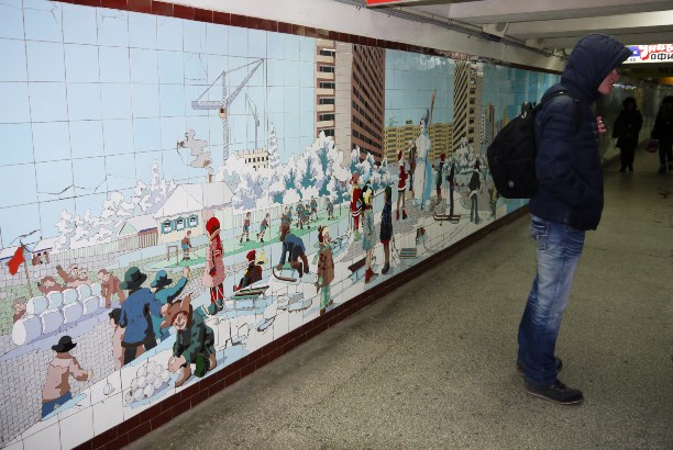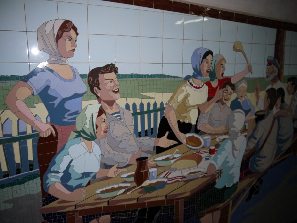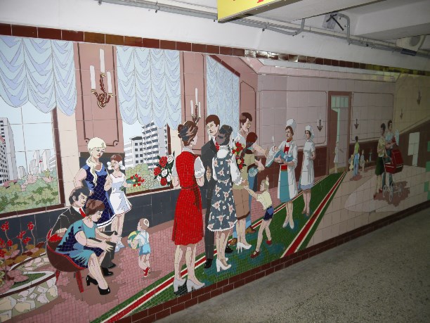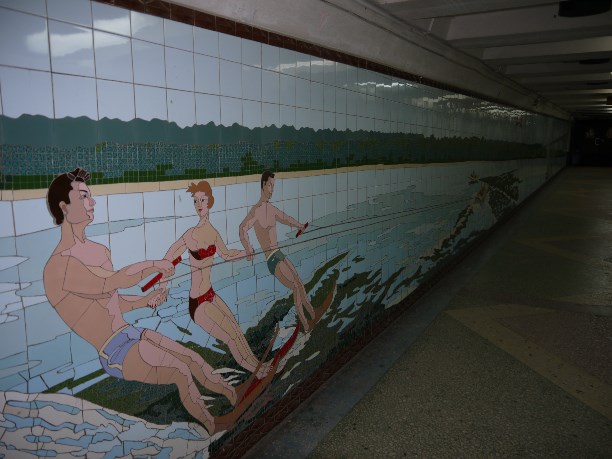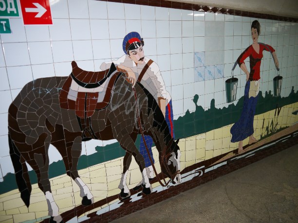 Отдельная история - подземные переходы Ростова. В них сохранились мозаичные панно времён СССР. Многие из них - настоящие шедевры, хоть и выполнены из обычного кафеля. Мы хотели проникнуть в переходы сразу, как приехали, но они работают по какому-то хитрому расписанию.