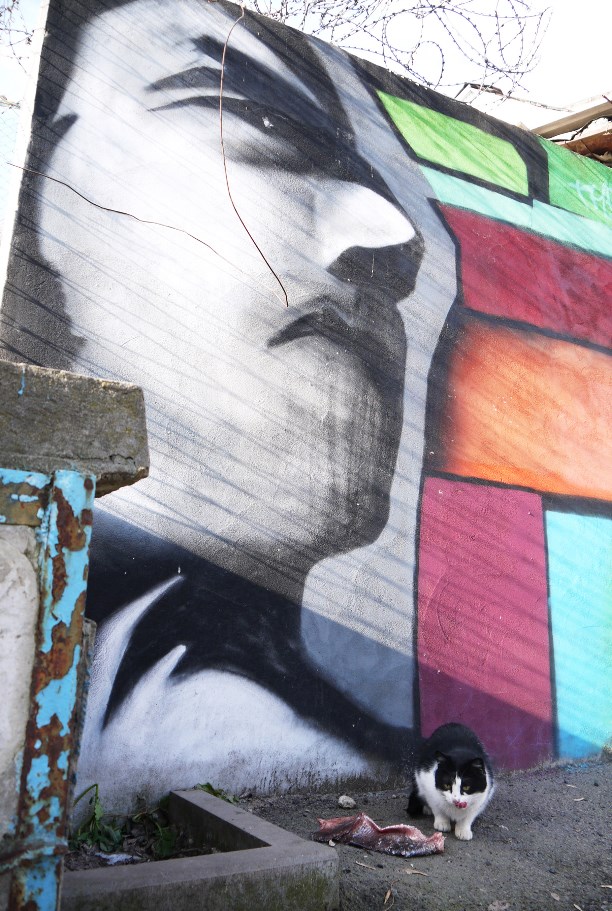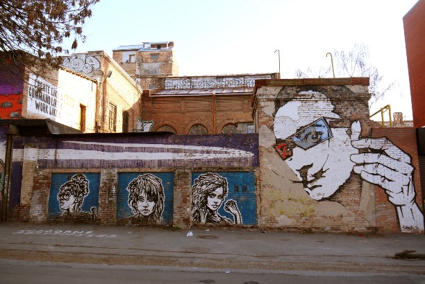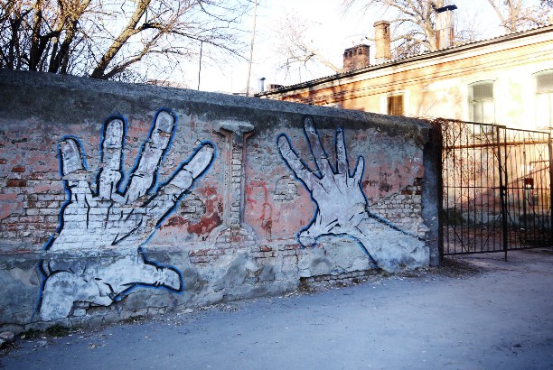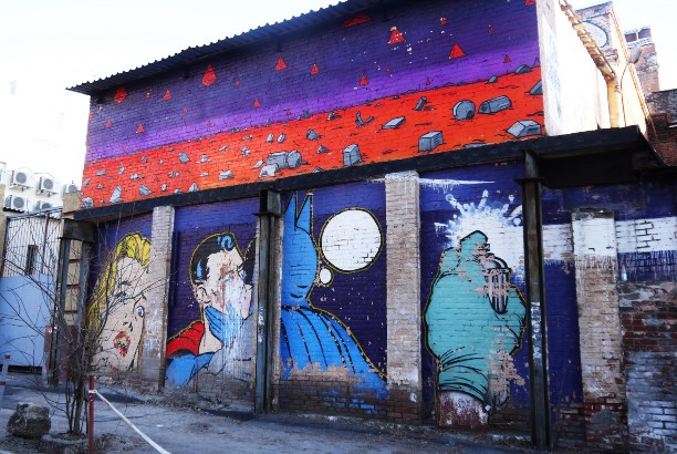 Техника уникальная и очень детальная. При ближайшем рассмотрении многие лица пугают (лоскутный зомбилэнд), но стоит отойти от стены на пару шагов... И чудеса!