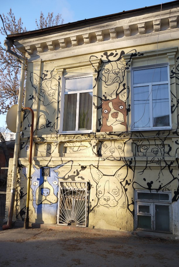 Но нам интереснее старый Ростов - с тихими улочками и покосившимися домами, коммунальными дворами и увитыми плющом подворотнями, крутыми спусками к реке и деревьями, образующими арки над всей этой "роскошью" исчезающей старины :)