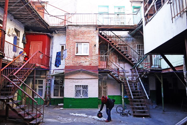 Бесконечные дворы-колодцы с шаткими лестницами и деревянными палубами балконов, разноцветными дверями и разноформатными окнами, общими радостями и печалями. В этих дворах всё ещё жива атмосфера шумных коммуналок.