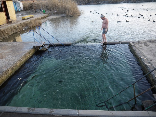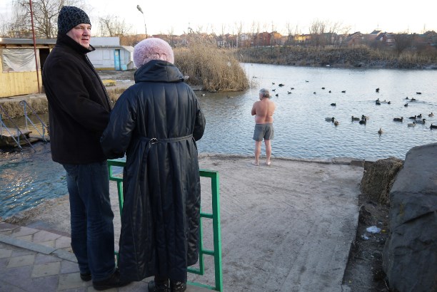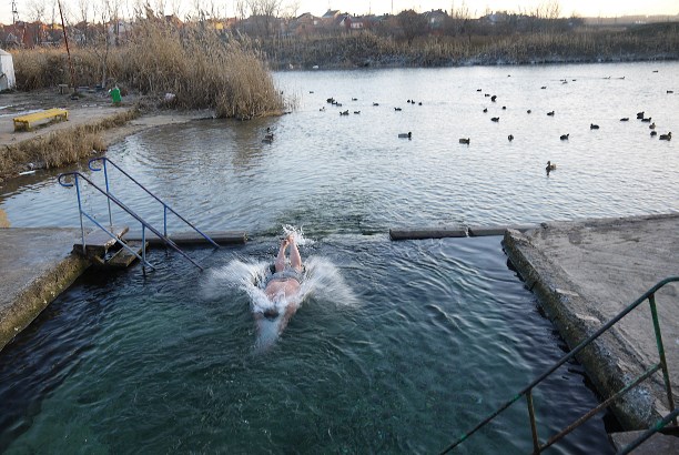 Купальщиков 1 января было немного. Всего один. После его фразы: "Ну почему меня все и всегда фотографируют как дурака?!" мы решили оставить 50-летнего ихтиандра за кадром :)