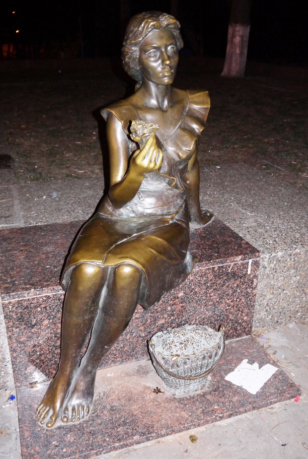 С другой стороны от входа в парк - закалённая Цветочница. К слову, в городе великое множестве неформальных скульптур. Все навестить не удалось: день слишком маленький, а город слишком большой - в два раза больше Тулы, но некоторые обязательно покажу.