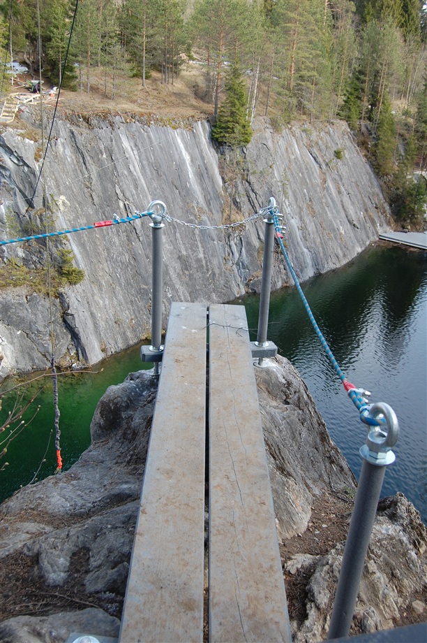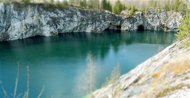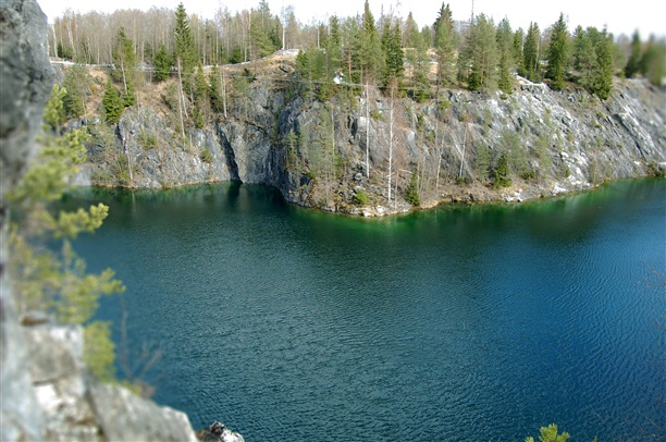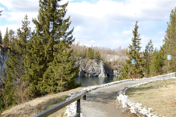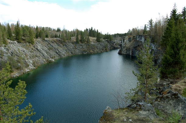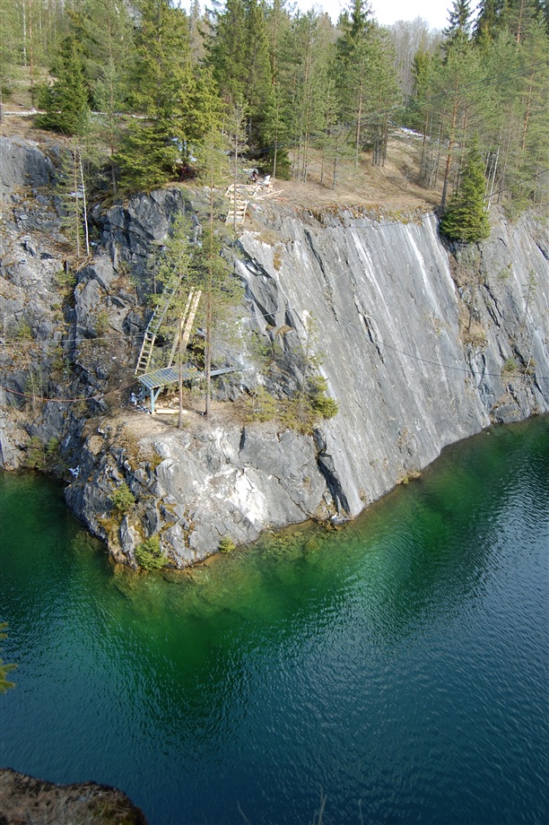 Небольшой экскурс в историю. Вдоль левого берега р.Тохмайоки в процессе добычи мрамора образовались три карьера, соединенные штольнями. Самый знаменитый и самый красивый: Мраморный каньон –памятник горного дела конца XVIII - начала XX в.в., официально включенный в список культурного наследия России в 1998 г. Подобного памятника, представляющего собой рукотворную «чашу» в сплошном массиве мраморов, прорезанного системой шахт, штолен и штреков, в Европе больше нет. Отсюда были получены блоки для облицовки многих архитектурных творений Санкт-Петербурга, в том числе и величественного Исаакиевского собора. Рускеальский мрамор цвета белых ночей, с зеленоватыми, похожими на северное сияние всполохами добывался для украшения самых разных архитектурных сооружений. Серовато-зеленым и светло-серым мрамором Рускеалы украшены залы Питерских станций метро "Приморская" и "Ладожская")