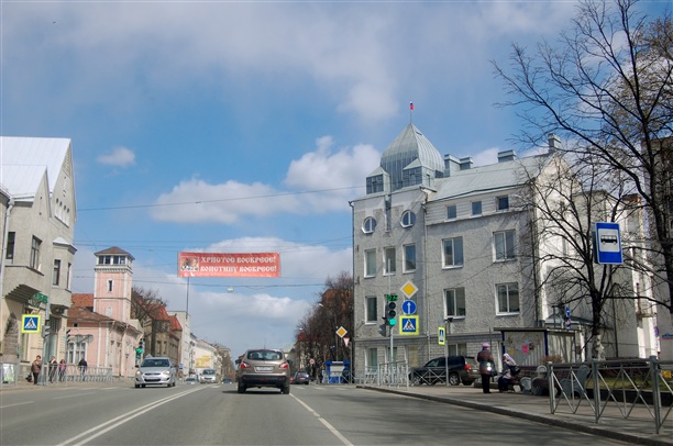 А так выглядит центр городка. Мы, конечно, встречали и пятиэтажки, но мне приглянулся именно этот уездный низкий центр.