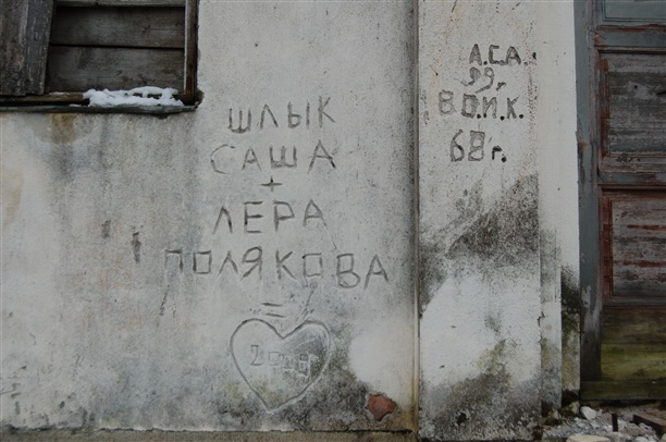 А еще, поразило! Все стены снаружи исписаны в духе "здесь был". Но, приглядевшись и прочитав, у меня, ей богу, побежали мурашки. Здесь был.. 1954 год, здесь был 1961 год. Здесь был 1973 год. Ребята! Они были молоды, они - ныне бабушки и дедушки приезжали туда и писали "здесь был"! Кого-то из писавших, уже, возможно, нет в живых, а слова, выведенные им на стенах этой кирхи - есть.