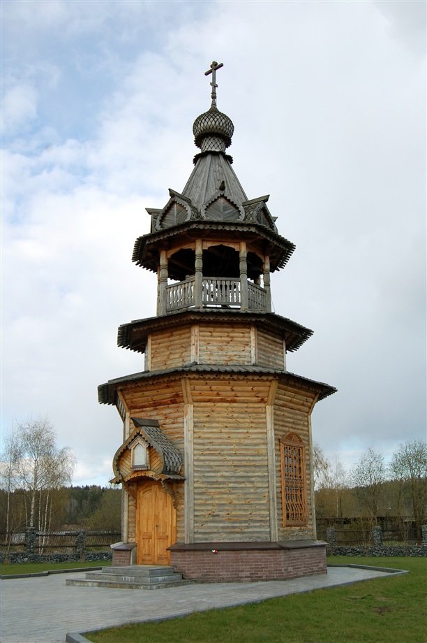 Есть там и новые церквушки. Мне понравилась эта часовенка. Она полностью из дерева, даже маковка. Невольно сравниваешь с Кижами.