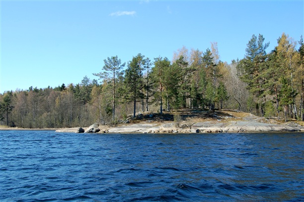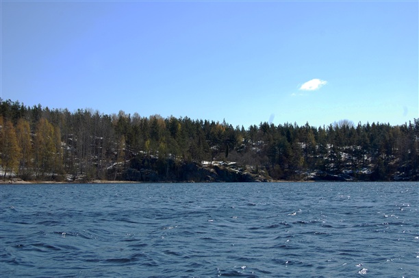 Северная часть Ладоги вся изрезана островами и протоками, так что, куда не глянь - везде вокруг суши вода. Серо-седые величественные берега нависают над холодной водой и чувствуешь себя маленьким и никчемным пред этой природой. А еще, под снегом, все напоминает скорее октябрь, нежели начало мая.