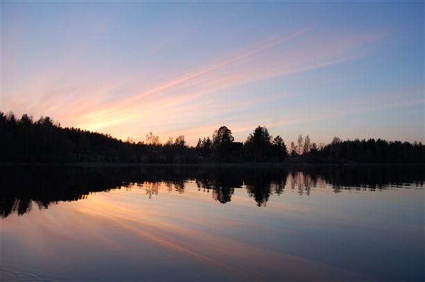 ... а в последний вечер мы не строили планов. Просто бродили по базе, щупали камешки и веточки, слушали и смотрели на птиц, которых у нас не водится. Солнце скатывалось за лес, воздух стал розовым от его прощального света и решили мы с ним проститься с воды. Взяв лодочку мы выплыли на середину нашего заливчика, сложили весла и просто смотрели и слушали.