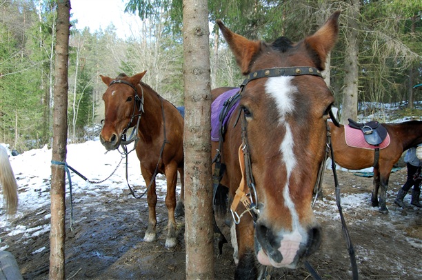 На лошади до этого я сидела в глубоком детстве,  но мечты мои так превознесли мои возможности, что я лихо запрыгнула в седло, по хозяйски устроилась и приготовилась изображать мушкетера, ну или, на худой конец, гардемарина!))) Ожидался несколько часовой вояж вокруг города. Выступали мы гуськом за инструктором, лошадки знали свое дело, не рвали вперед и не упрямились. Правда иногда "зависали" над каким-нибудь кустом со свежими листиками, что приходилось прилагать много усилий, чтобы оторвать их от поедания вкусняшки. Случались моменты, когда вела лошадь, как мне казалось, более удобной дорогой, на что она тянула удила, как бы говоря: "я таких чайников видела, как ты, ууу. Сиди тихо - без тебя все знаю." Честно, я прям слышала, как она это думала, когда фыркала, при моих попытках сделать глупость. И признаюсь честно: быть наездником тяжелый труд. Ноги и сидалище начинает болеть очень быстро от непривычной и неестественной позы. Спина скоро устает, начинаешь сутулиться - опускаются поводья и лошадка тут же чует, что контроль над ней потерян. А еще, когда я читала множество книг про наездников, про любовь к своему коню, я, пожалуй, не доконца понимала этой связи. Сейчас же, меня просто озарило, что ли. Лошадь - не машина, которой можно научиться управлять и за поведение авто несешь ответственность только ты сам. Лошадь - живое существо, от воли и желания которого ты зависишь целиком и полностью. Ее можно укротить, но нельзя подчинить дух и характер. Под него можно только подстроиться и научиться дружить с ним. И если нет связи между наездником и животным - нет безопасности, нет ответственности с обеих сторон.