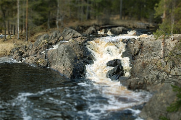 Почти на подъездах к Рускеале, где нас ждали карьеры, есть небольшая река Тохмайоки, впадающая в Ладогу. А на реке этой есть водопады Ахвенкоски. В переводе с финского языка «Окунёвый порог». Местные жители иногда называют его «водопад у трех мостов» - этом месте извилистая речка Тохмайоки трижды пересекает дорогу. Водопады находятся совсем у дороги, их хорошо видно. Там целая стоянка для туристов с самоварами, пирожками, копченой рыбой и сувенирами. Но знамениты они не этим.