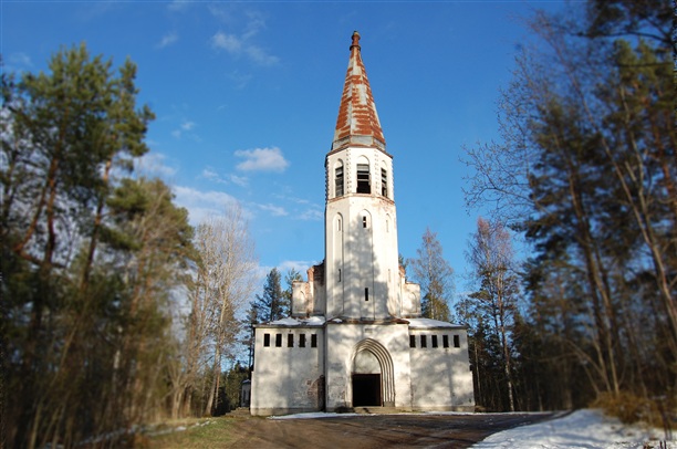 В лесах на скале спряталась великолепная лютеранская кирха, построенная по проекту архитектора Илмари Лауниса в 1935 году. Поражает она своей, по сути, не тронутостью. Как нечто оберегает ее от излишне безкультурных вандалов. У нас бы ее разобрали по кирпичу очень быстро. Но кирху спасло ее отдаленное и уединенное место.