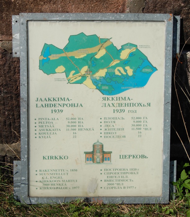 Оказалось, что это Лютеранско-Евангелическая церковь прихода Яаккима, которая была построена в середине 19 века Карлом Людвигом Энгелем. При советской власти в разные времена там содержали заключенных, был молокозавод и бог знает что еще. В 1977 церковь сгорела. В начале 1990-х к руинам кирхи были возвращены два гранитных блока памятника местным финским воинам, погибшим в 1918 году. Установлен памятный крест. Кроме того при участии Финляндии осуществлена консервация стен храма (сообщает один источник, википедия же о консервации ничего не знает.) Выглядит величественно и монументально! И я склоняюсь к мысли, что все таки консервация была - уж очень хорошая сохранность стен, будто сложили ее пару лет назад.