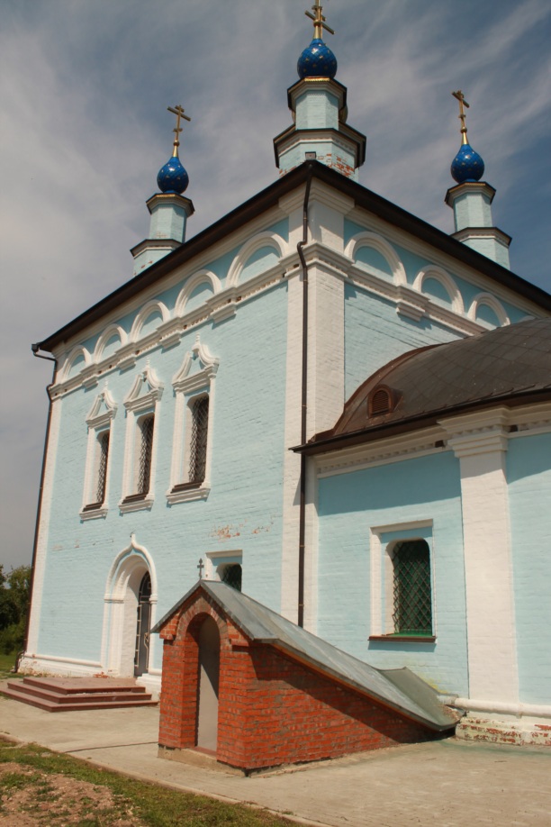 Храм, находящийся на территории святого места, снаружи выглядит серовато. Нету в нем лоска и блеска, так известного нам по другим православным храмам. Но и натерпелся он за свой век. Коммунисты, в своем безумном желании выжечь христианство из душ людей сначала разметили в храме школу, потом пионерлагерь.