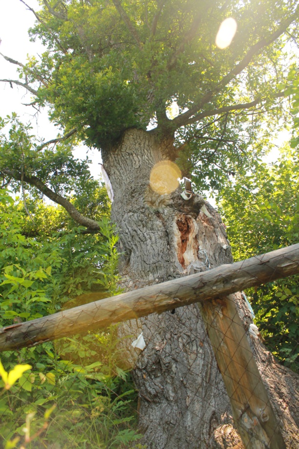 Это то место, куда преподобный старец Макарий ходил молиться. Теперь же к дереву тянутся паломники — загадывают желание, прикасаются к святыне, привязывают кусочки материи к стволу, либо просто отрывают кусочки коры «на счастье». От таких вандалов дуб огородили забором, но сзади забор сломан и подойти к дубу не составит особого труда.