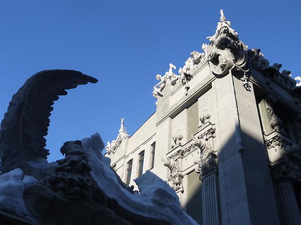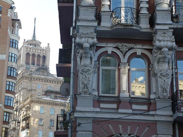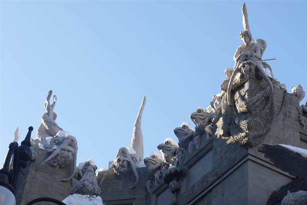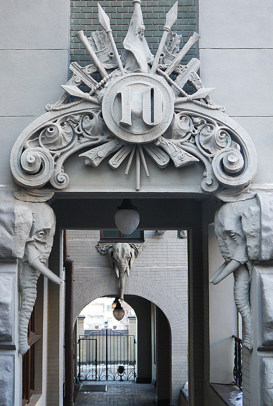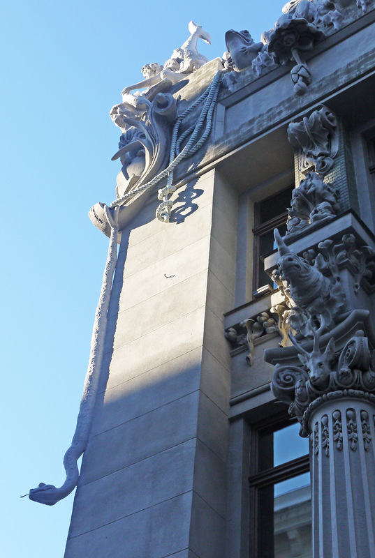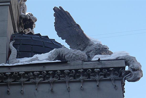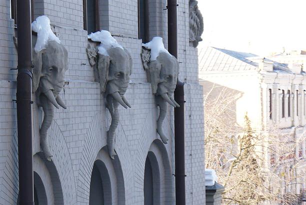 Не так далеко от Майдана, на улице Банковой, 10 стоит невероятный дом - его называют домом с химерами :) Построен он на берегу осушенного Козьего болота в 1901-1903 годах. И похоже, все твари из осушенного болота нашли себе новое место обитания :)) На фасаде сгрудились сказочные чудища и вполне себе реальные представители животного мира! Носороги, слоны, гигантские жабы, жирафы, дельфины, змеи... Есть, кстати, и один крокодил! Считается хорошей приметой разыскать его среди множества остальных тварей. Мы сразу бросились искать! :)))
