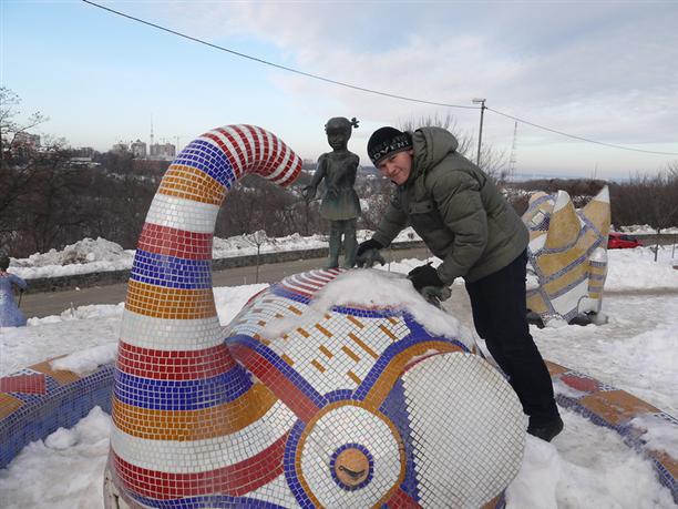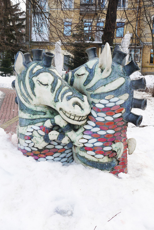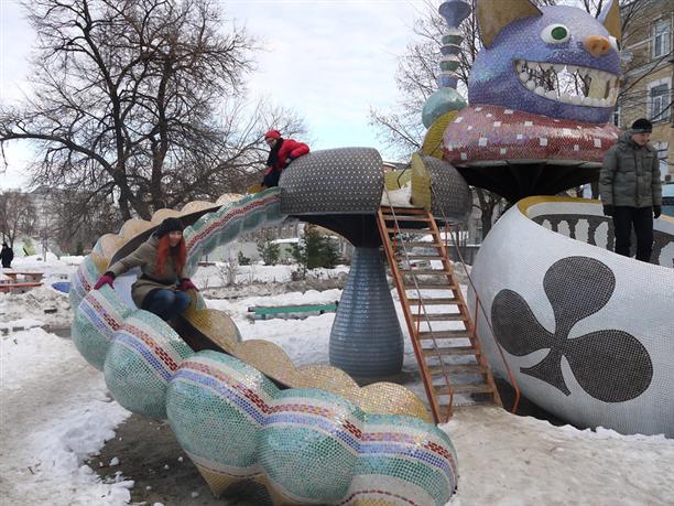 Из Десятинного переулка выходим на Пейзажную аллею. Вот оно чудо-чудесное! Мозаичное :) Кого тут только нет? Принцессы на подушках, коты-сороконожки, хохочущие зайцы, влюбленные зебры, чеширский кот, маленький принц, грибная гусеница :)) А летом на аллее еще и цветы цветут, и фонтаны бьют! Очень необычное и сказочное место. Кстати, охраняется ЮНЕСКО :)