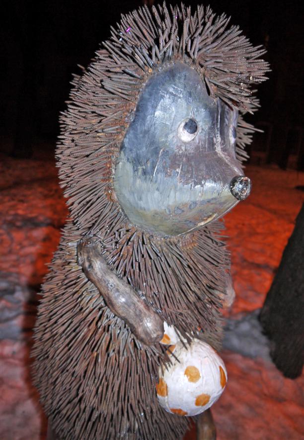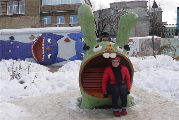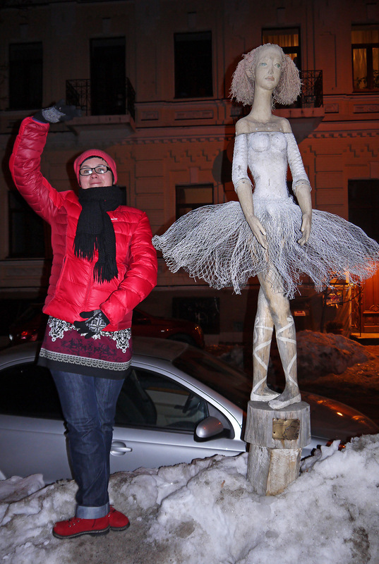 Если из Пейзажной аллеи выйти к Большой Житомирской, а затем по улице Владимирской добраться до Софиевской площади, то можно увидеть не только красивую Софиевскую церковь... но и в ее окрестностях найти балерину, ослика и ёжика в тумане! :) Но это если знать заранее! У нас же это получилось не сразу :) Ну так знайте - балерина стоит на пересечении улиц Стрелецкой и Сретенской, ослик в Рыльском переулке, а ёжик живет на пересечении Рейтерской и Золотоворотской. Все трое безумны :)) И у ежика иголки - из шурупов.
