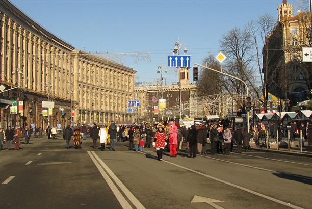 От Софиевской площади по Софиевской улице идем к Майдану Незалежности! :) Идем прям по проезжей части - БУРУЛИ, однако!