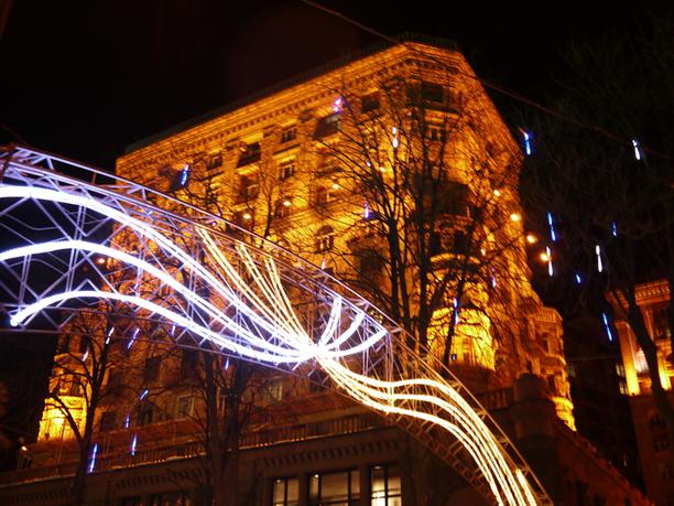 Лютеранская приводит нас на знаменитый Хрещатик, который днем у меня не вызвал никаких приятных мыслей. Просто гигантский УЛЕЙ! Зато вечером, когда зажглись огни и ёлки... вулиця сразу стала волшебной! Смотрим днем и вечером ;)