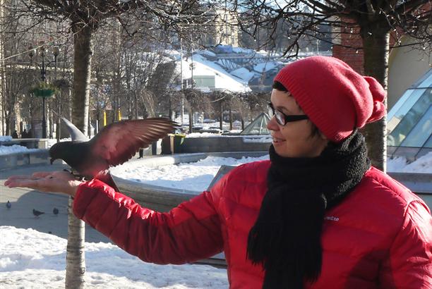 Рядом с фонарями обитает целое семейство голубей. Любят семечки, хлебные крошки, картошку из макдака, сало и борщ. Мы заприметили их, когда сидели в блинной и ели млынци (блины!), а стада голубей (точнее, их безголовые тушки) ходили по крыше над нами! делали они это под музыку, чем абсолютно нас очаровали :))