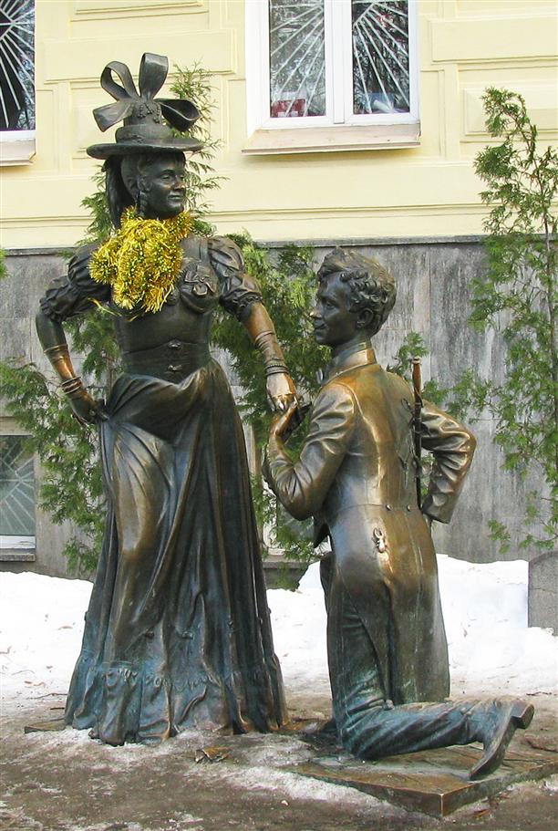 По словам автора скульптуры, хитрость в том, что на лавочку рядом с фонарями может сесть только один человек... Так что если садится ОН, то ОНА неизбежно прыгает к нему на колени! (ко мне на колени, слава Богу, никто не прыгнул). Существует и интересная городская легенда про девушку, которая очень любила опаздывать на свидания и парня, который был готов ее ждать всегда - в любую погоду, в любое время суток! Однажды он ждал ее так долго, что превратился в фонарь. Девушка пришла, села возле него да так и осталась - зачарованная и влюбленная. Теперь они никогда не расстаются.