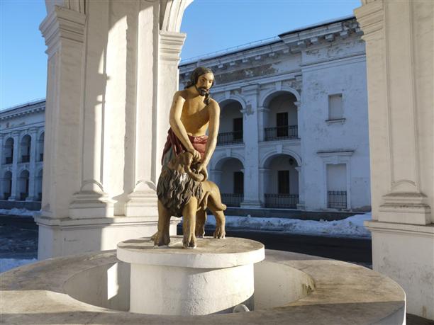 Андреевская церковь (место венчания Прони и Голохвастова) и олень-привратник.