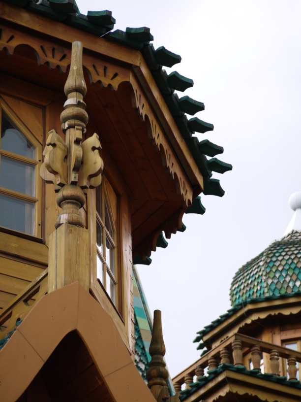 Не так давно (в 2010-м) «чудо» восстановили. Правда, дворец теперь не совсем деревянный. Это железобетонная конструкция, которая снаружи покрыта бревнами. Но даже при всех этих вынужденных извращениях хоромина впечатляет! Многочисленные резные детали и роспись, внутренние «деревянные» лабиринты и просто невероятные масштабы!
