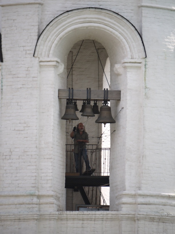 На месте белокаменной Георгиевской колокольни когда-то стояла деревянная церковь, которую московский князь Дмитрий Донской приказал поставить в честь великомученика Георгия и в память о битве на Куликовом поле (8 сентября 1380 г.) Нам повезло, мы стали свидетелями настоящего колокольного концерта на Георгиевской звоннице. Как часто это бывает, не знаю.