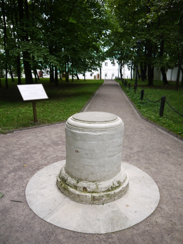 Кстати, дворец возвели совсем не там, где он был ранее (переврали слегка историю, но сберегли другую красоту). Будете гулять по усадьбе, увидите челобитный столб, знайте, он находится у главного фасада «невидимого дворца царя Алексея Михайловича», это и есть место, где в 16 веке стояло «восьмое чудо света». По преданию на столб клали челобитные – просьбы и жалобы царю, на нём же размещали царские указы. А по внешнему виду и не скажешь, что важная персона.