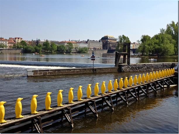Желтые пингвины на набережной. Что может быть очевиднее. Разве что гигантский стул. Все это находиться на против музея современно искусства, видимо, и инсталляции принадлежат ему. Сам музей полный треш, надо быть очень современным, чтобы это понимать.