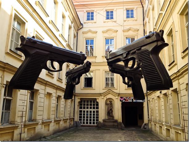 Продолжая рассказ об инсталляциях – в Праге есть стена Джона Леннона. Типа стены Цоя, только не Цоя. Там все рисуют баллончиками и красками. Сначала нарисовали офигенные портреты Битлз, потом еще что то, и так и рисуют постоянно закрашивая предыдущие художества. Стена здоровая – метров 15-20.