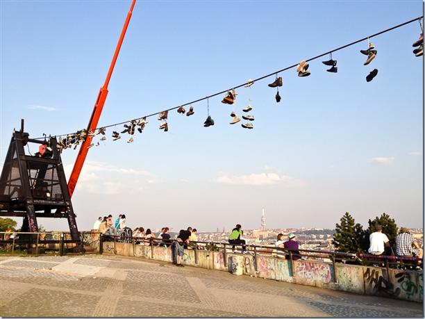 В Праге, как и во всей прогрессивной Европе, любят всякие инсталляции, аля современное искусство (недоступное для понимания российскому провинциалу). Это например смотровая площадка в парке Летна. Наверное, перекинутые кеды что-то обозначают, но что, я так и не понял.