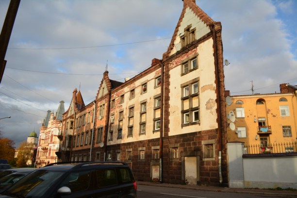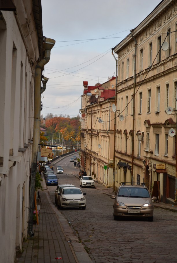 А чем больше углубляешься в кварталы, тем больше погружаешься в средневековье. Дома становятся кряжистее, улицы уже. И что по-настоящему подкупает, так это практически полное отсутствие людей на этих улицах. И дело тут даже не в погоде, с которой нам, кстати, очень повезло, а в том, что, как и в любом другом старом городе, люди так привыкли, что живут в таких чудесных дома и привыкли к таким уютным мощеным улочкам, что перестают замечать все это. Туристы из крупных городов почти не посещают Выборга. Да и зачем, когда Северная столица под боком и получается, что город отдается только тем, кто ехал в него целенаправленно, не проездом из Питера в Финку, а чтобы посмотреть его закоулки и быть вознагражденным за это внимание к своей скромной персоне.