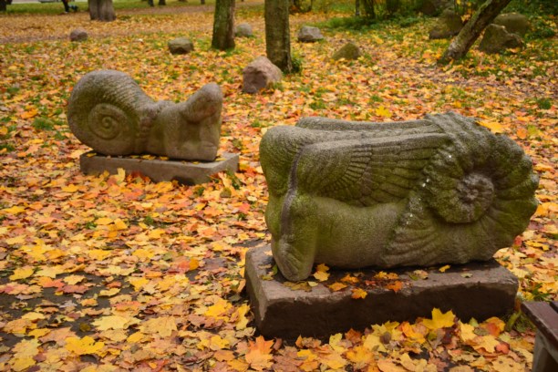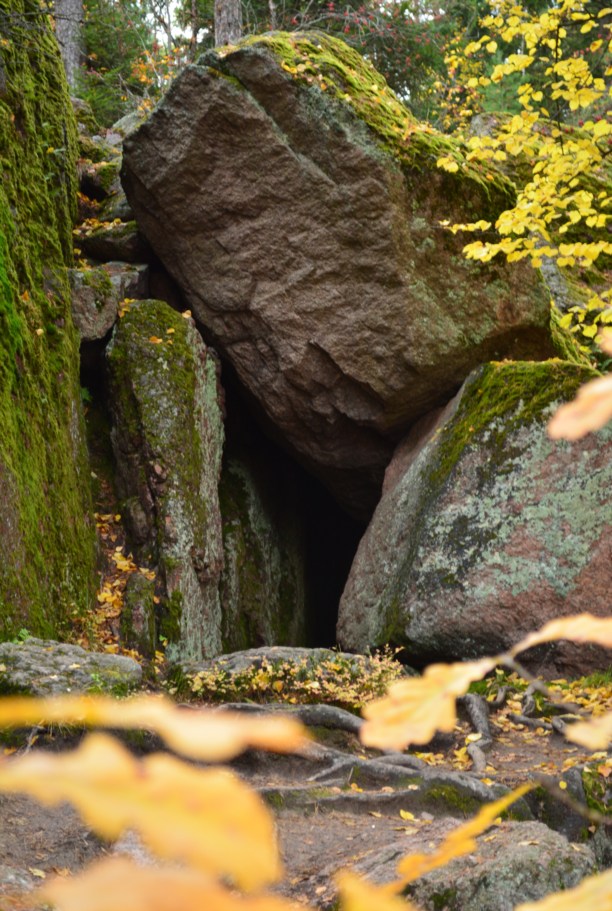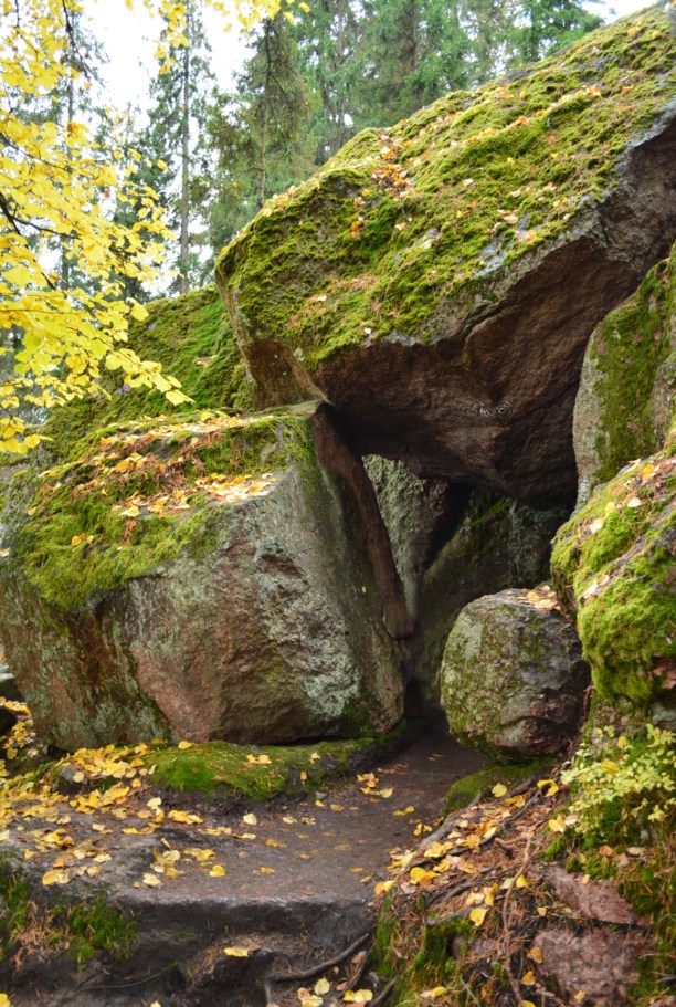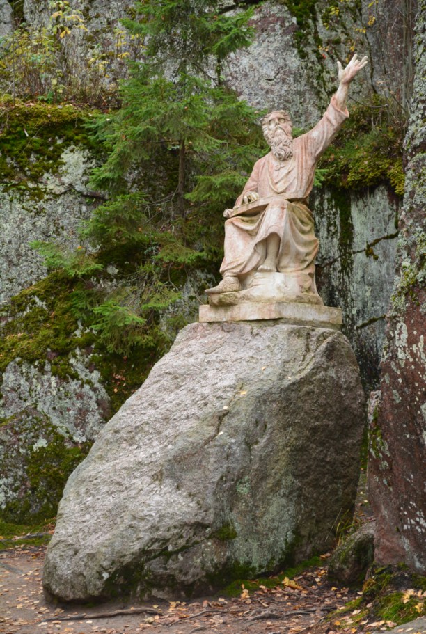 Пещера эта располагается в западной части парка. Там же можно найти скульптуру (теперь бы выговорить!) "Вяйнямейнен, играющий на кантеле". Товарищ этот- персонаж карело-финского эпоса "Калевала". Скульптуры слабо представляли, как он должен был выглядеть, поэтому сделали его в привычных античных формах))) Место для скульптуры выбрано тоже не случайно: стоит она в нише в скале. В определенное время дня, солнце освещает эту нишу, отражаясь от скал, и, кажется, что Вяйнямейнен сидит в потоке света и излучает его.