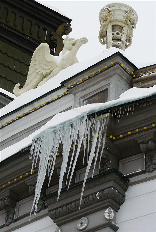 Чтобы попасть на Бауманку, пришлось пересечь самую пафосную улицу - Кремлевскую. На которой, что не дом, то чей-то старинный особняк, и в нем обязательно какое-то ведомство. Гулять по такой улице красиво, но скучно. Чиновники все на каникулах. Улица точно вымерла... А на крышах маниакальные мальчики и опасные сосульки исполинских размеров :)