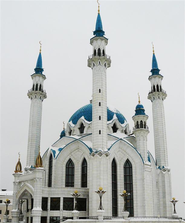 Внутреннее пространство мечети рассчитано на полторы тысячи человек, на площади перед ней могут разместиться еще десять тысяч. Высота минаретов - 55 метров. Утром 1 января у стен Кул-Шарифа топтались только мы. А потому очень чувствовалась космическая масштабность строения :))) и наша принадлежность к отряду перепончатокрылых...