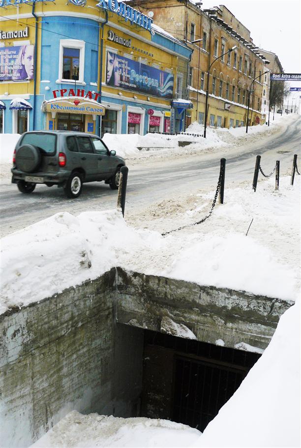 Говорят, под улицей Баумана есть подземная (параллельная!) улица. И мы даже нашли несколько "нор", ведущих туда. Но "норы" были почти полностью завалены снегом, никакого намека на ступеньки и........ конечно, пришлось бы разорвать пальто, пролезая через решетки :))) Так что подземная улица осталась моим не исполненным желанием (может, когда-нибудь, летом?)