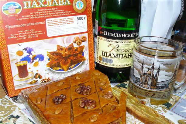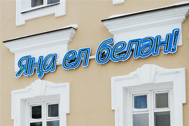 Меня бесконечно радовали всякие татарские письмена. Вот эта вывеска, к примеру, "Яна ел белан!" (что значит "С новым годом!"). Но еще больше радовали сами татары, которые повсюду - в метро, в магазинах, на улице - улыбаясь, поздравляли нас с наступившим годом! На особом казанском "бешельме" :)))