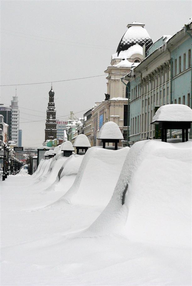 Кстати, Казань просто утопала в снегу вместе со всеми своими историческими улицами, купеческими особняками и многочисленными памятниками. Снега было по горло! Без преувеличений :) Я никогда не видела СТОЛЬКО СНЕГА! :) И меня это радовало. Я весь день была счастливым пешеходом. Расчищен (относительно расчищен) был только Кремль. Должно быть, из чувства глубокого уважения к президенту Минниханову :)